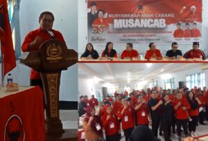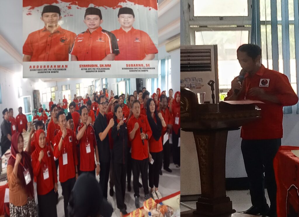 Foto, Ketua PAC Pekat, Dahlan, SPd, saat membacakan Pengurus PAC Pekat di Musancab DPC PDIP Kabupaten Dompu di Gedung PPK...