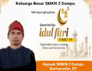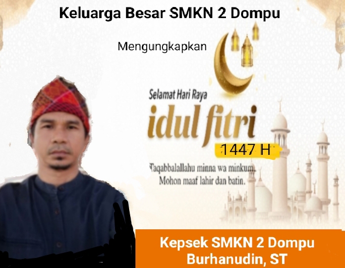 Kepsek, Burhanudin, ST Beserta Seluruh Keluarga Besar SMKN 2 Dompu, Ucapkan Selamat Hari Raya Idul Fitri 1447 H, Mohon Maaf Lahir Dan Batin