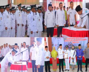 Foto, Bupati Dompu H. Kader Jaelani (AKJ) Saat Kukuhkan Perpanjangan Masa Jabatan 68 Kepala Desa. ChanelNtbNews, Dompu, NTB...