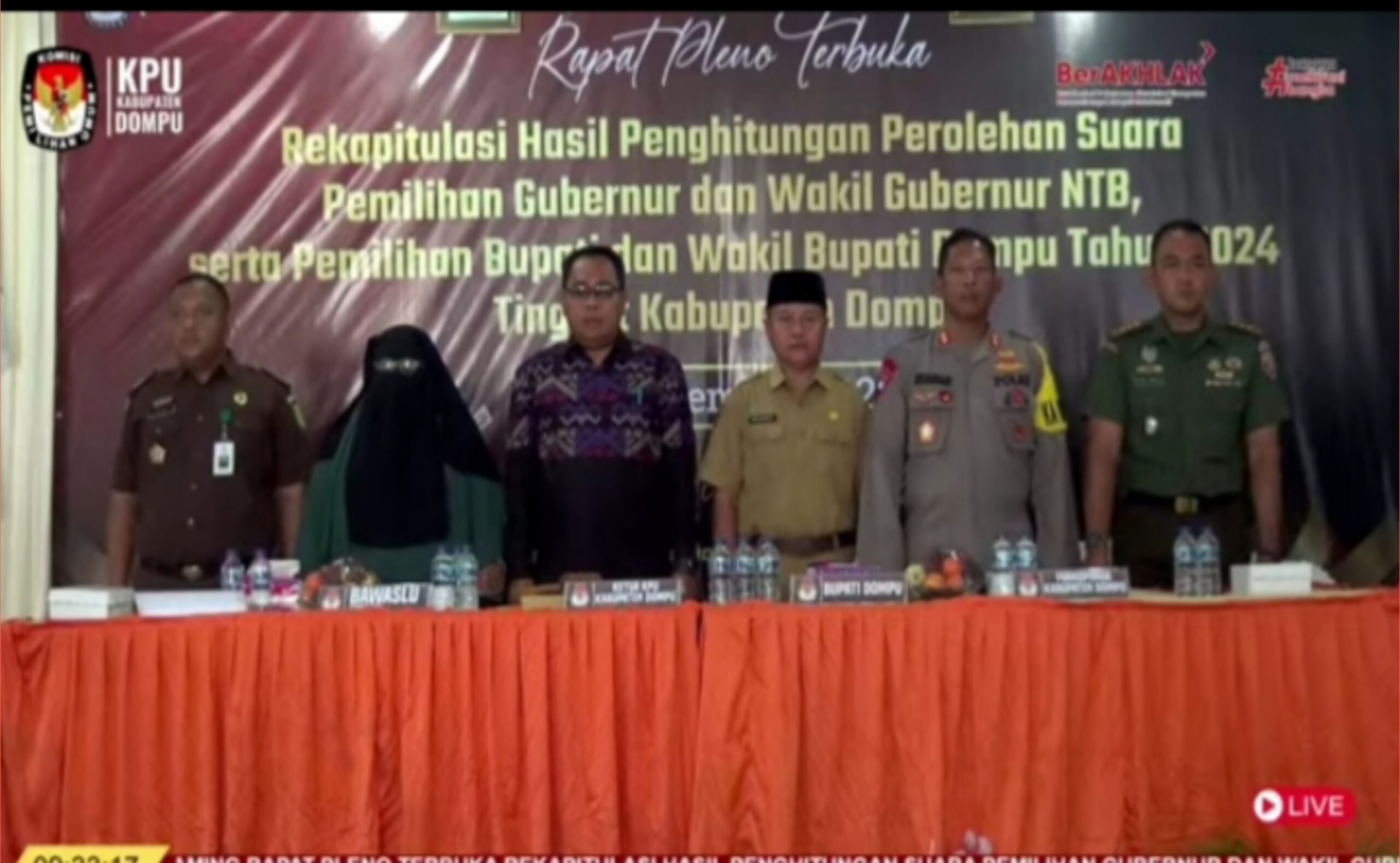 ChanelNtbNews, Dompu, NTB – Komisi Pemilihan Umum (KPU) Kabupaten Dompu menggelar Rapat Pleno Terbuka, Rekapitulasi Hasil Perhitungan Perolehan Suara Pemilihan Gubernur Dan Wakil Gubernur Serta Pemilihan Bupati Dan Wakil Bupati Dompu Tahun 2024, Tingkat Kabupaten Dompu