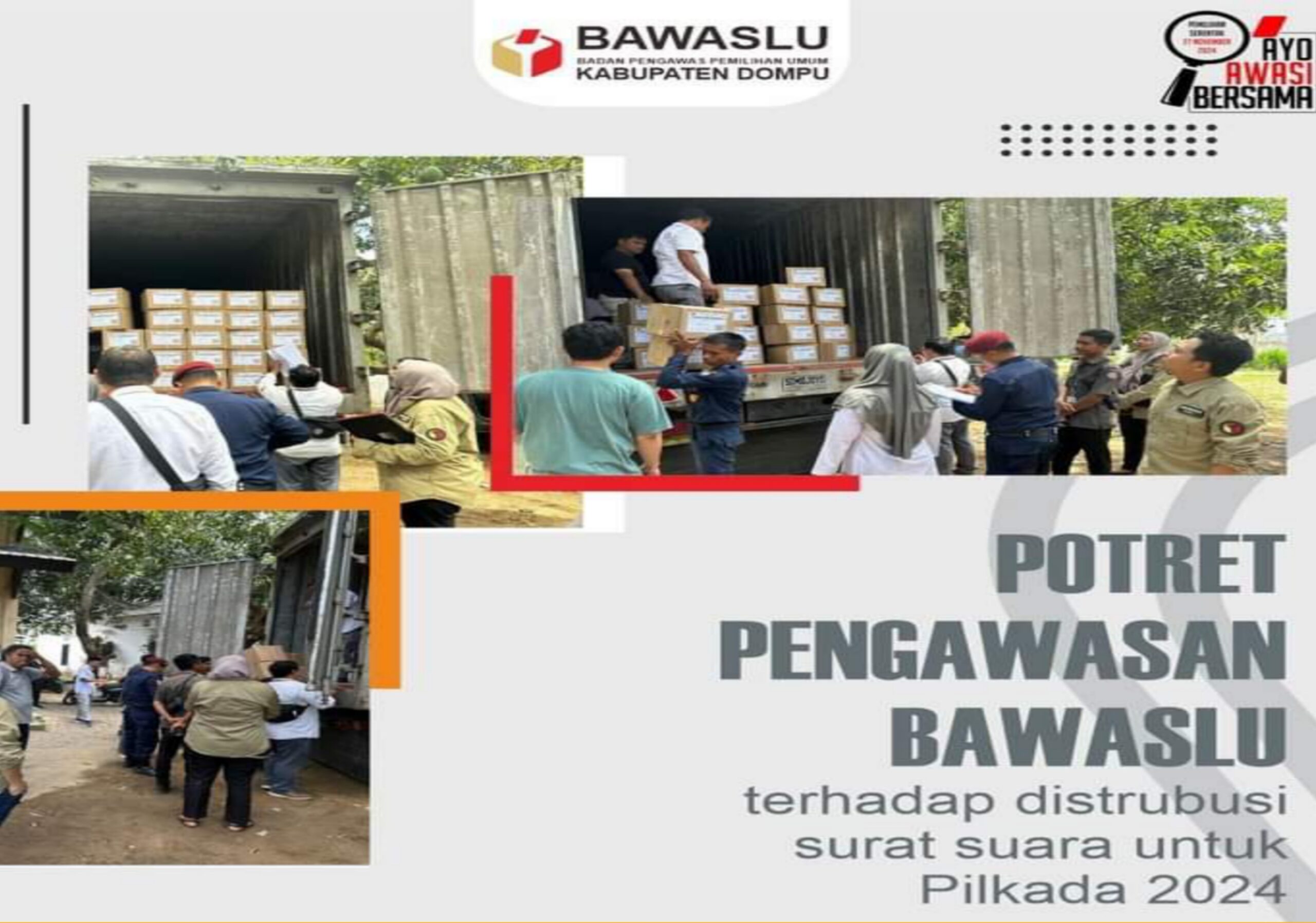 ChanelNtbNews, Dompu, NTB – Dalam rangka mendukung kelancaran Pemilihan Kepala Daerah (Pilkada) 2024, Bawaslu Kabupaten Dompu melakukan pengawasan ketat terhadap Distribusi Logistik surat suara yang tiba di Kantor Komisi Pemilihan Umum (KPU) Kabupaten Dompu pada hari Senin (21/10/2024).