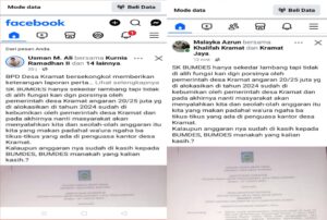 Senada juga yang diunggah pemilik akun Facebook lain bernama, Usman. M. Ali Menyebutkan bahwa BPD Desa Kramat diduga bersekongkol dengan Pemerintah Desa.