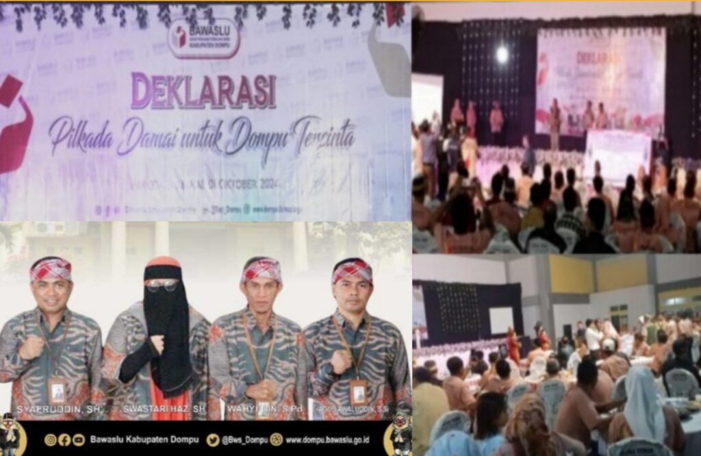 ChanelNtbNews, Dompu, NTB – Dalam rangka mengsuksekan Pilkada Serentak Tahun 2024, Badan Pengawas Pemilu (Bawaslu) Kabupaten Dompu, menggelar kegiatan Deklarasi dengan tema “Pemilihan Kepala Daerah (Pilkada) Damai untuk Dompu Tercinta”.