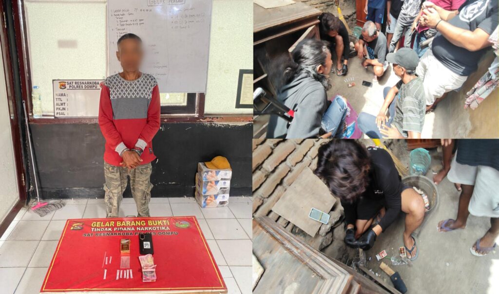 Dari hasil penggeledahan badan dan tempat kejadian, ditemukan sejumlah barang bukti narkotika yang kemudian diamankan ke Polres Dompu.