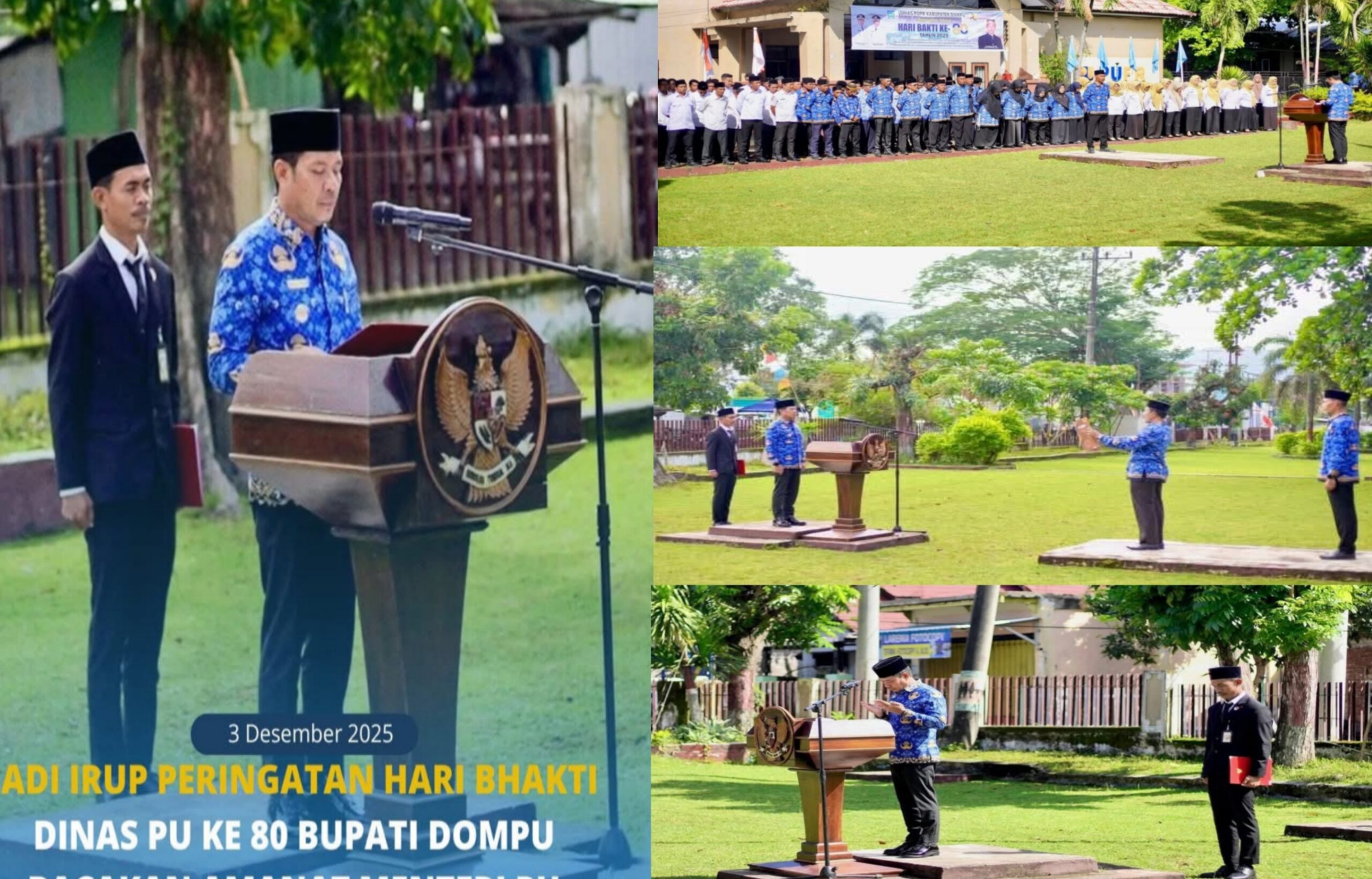 Dompu, NTB, ChanelNtbNews – Bupati Dompu Bambang Firdaus,SE menjadi inspektur pada upacara Peringatan Hari Bhakti PUPR ke-80. Kegiatan ini dilaksanakan di halaman Kantor Dinas PUPR Kabupaten Dompu, Rabu (03/12/2025).