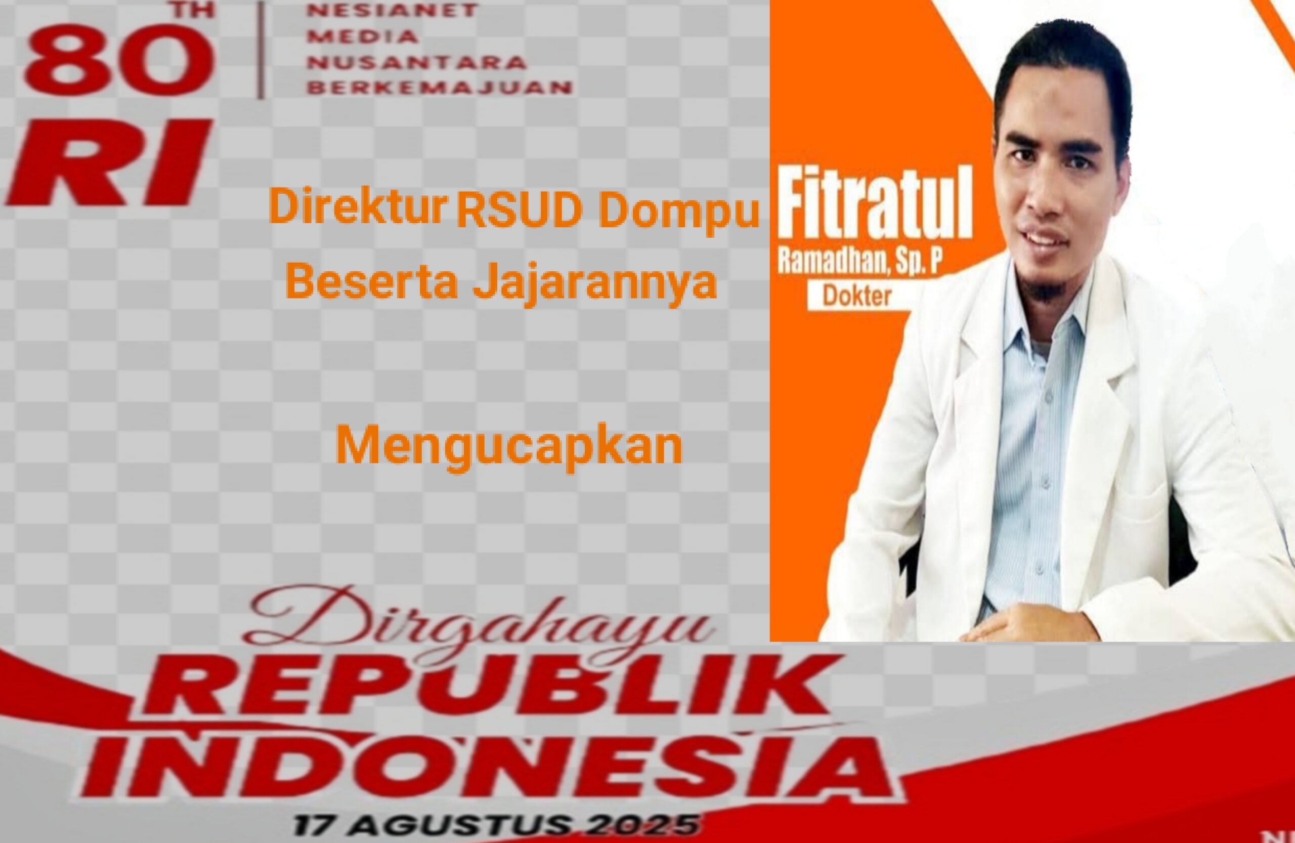 Momentum Hari Kemerdekaan ini, Direktur RSUD Dompu, dr. Fitratul Ramadhan beserta seluruh Staff, Mengucapkan Selamat Hari Kemerdekaan RI yang ke-80 tahun 2025