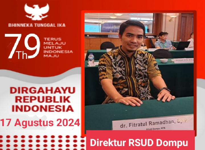 Lewat, Momentum Kemerdekaan ini, Direktur RSUD Dompu, dr. Fitratul Ramadhan Dokter Spesialis Paru Beserta Jajarannya, Mengucapkan Dirgahayu RI Yang Ke-79 tahun 2024.