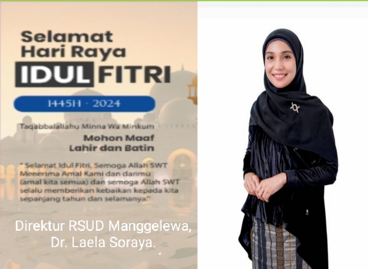 Maka Momentum Menyambut Hari Kemenangan ini, Direktur RSUD Manggelewa, Dr. Laela Soraya Beserta Jajarannya Mengucapkan Selamat Hari Raya Idul Fitri 1445 H, Minal Aidin Walfaidin, Mohon Maaf Lahir dan Bathin.