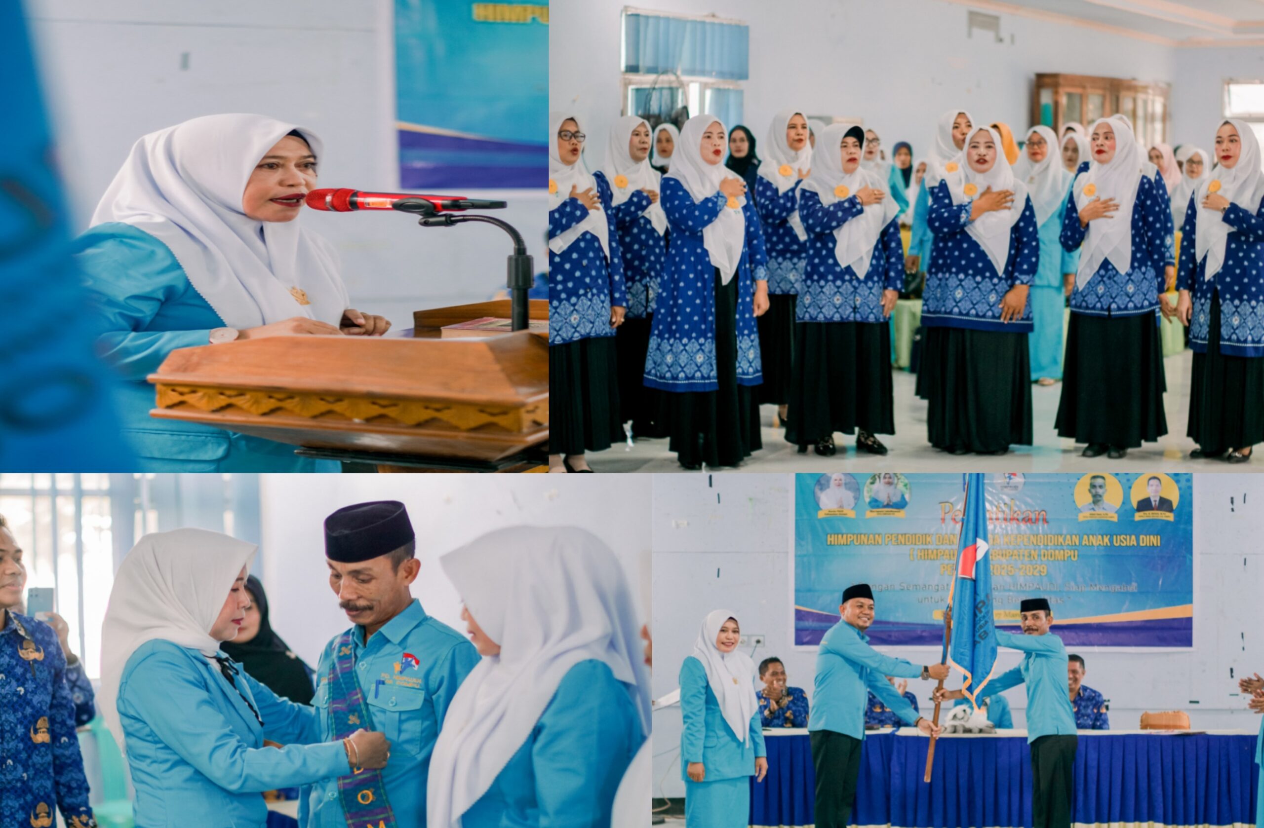 ChanelNtbNews, Dompu, NTB – Nyonya Onti Farianti Bambang Firdaus Hadiri Pelantikan Pengurus Himpunan Pendidik dan Tenaga Kependidikan Anak Usia Dini Indonesia (Himpaudi) Kabupaten Dompu Periode 2025-2029 di Gedung PKK Dompu, Senin, 17/03/25.