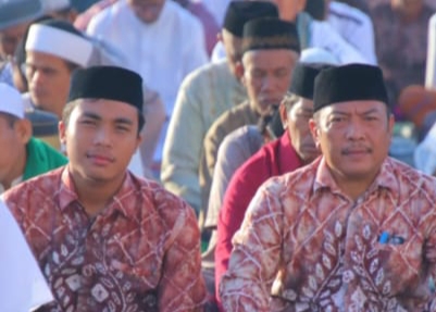 Foto, Kepala Bagian Protokol Dan Komunikasi (Prokopim) Setda Dompu Yani Hartono, SP, saat melaksanakan Sholat idul adha di lapangan beringin Dompu