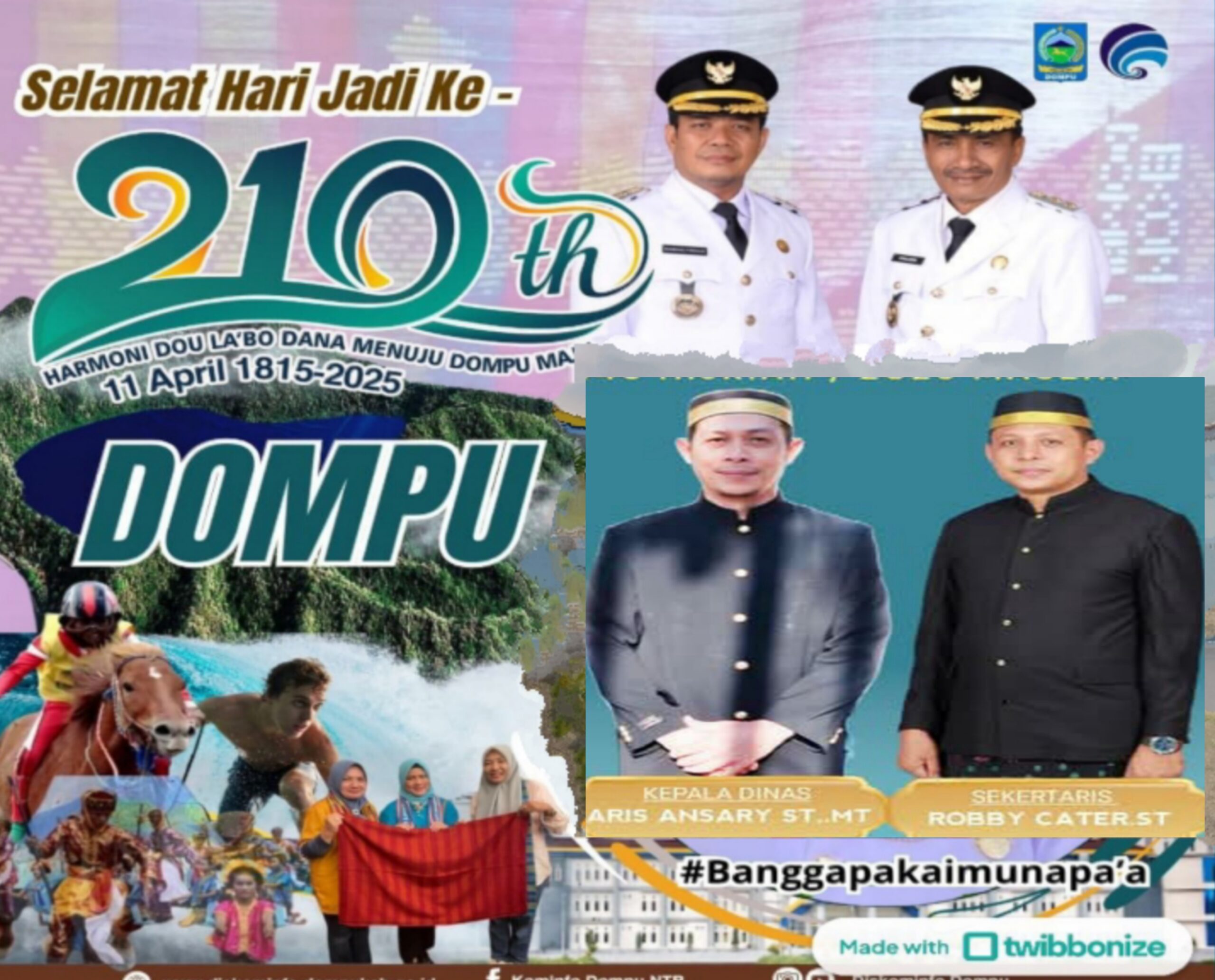 Maka, Lewat Momentum hari lahirnya Dompu, Kepala Dinas PUPR Kabupaten Dompu, Aris Ansary, ST,.MT Beserta Seluruh Jajarannya, Mengucapkan Selamat Hari Jadi Dompu yang ke-210 Tahun