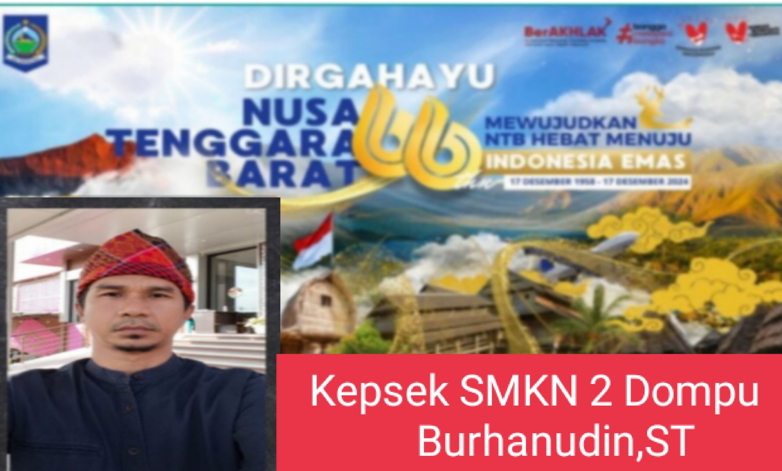 Maka, momentum bersejarah ini, Kepsek Burhanudin, ST Beserta Keluarga Besar SMKN 2 Dompu mengucapkan Selamat Hari Jadi Provinsi NTB yang ke-66 Tahun 2024