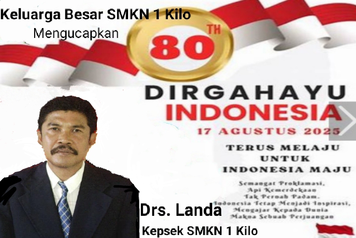 Maka, momentum Kemerdekaan ini, Kepala Sekolah, Drs. Landa Beserta Seluruh Guru dan TU SMKN 1 Kilo, Mengucapkan Dirgahayu RI yang ke-80 Tahun 2025.