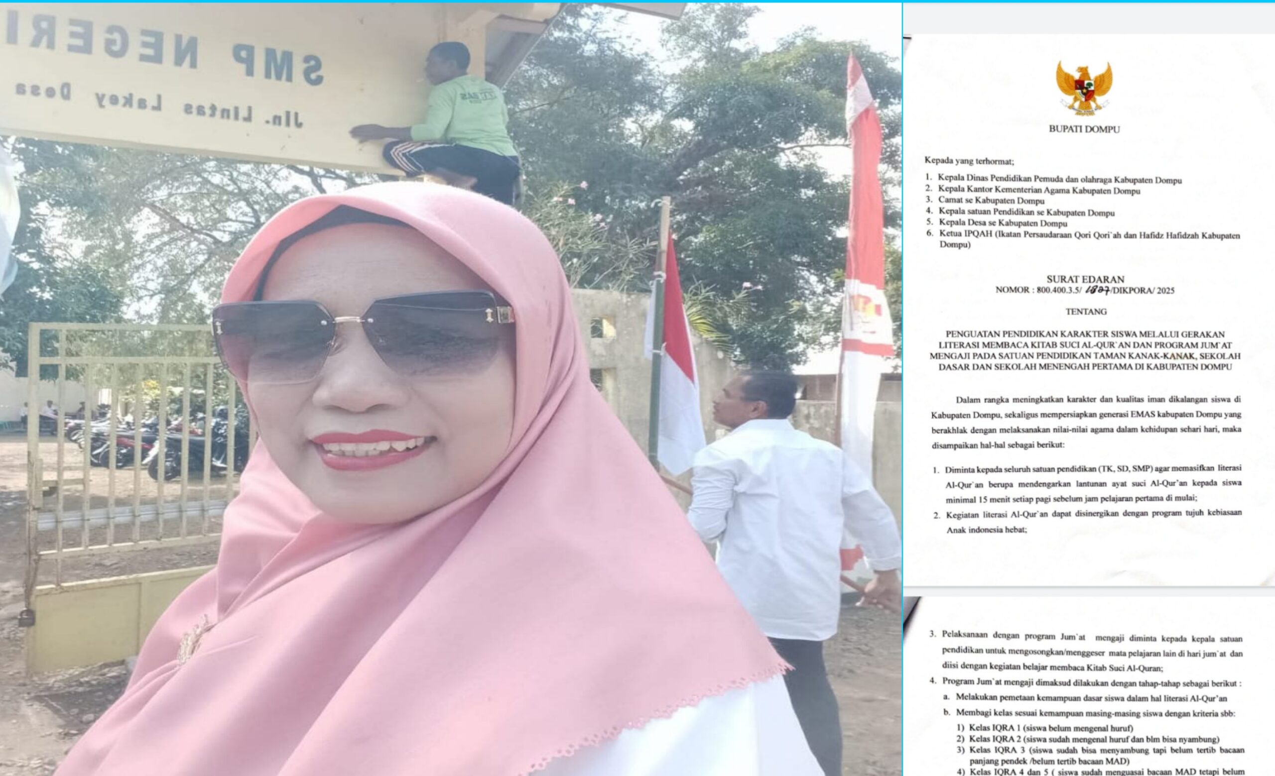 Foto, Kepsek SMPN 6 Dompu, Suhada SPd dan Surat Edaran Bupati Dompu