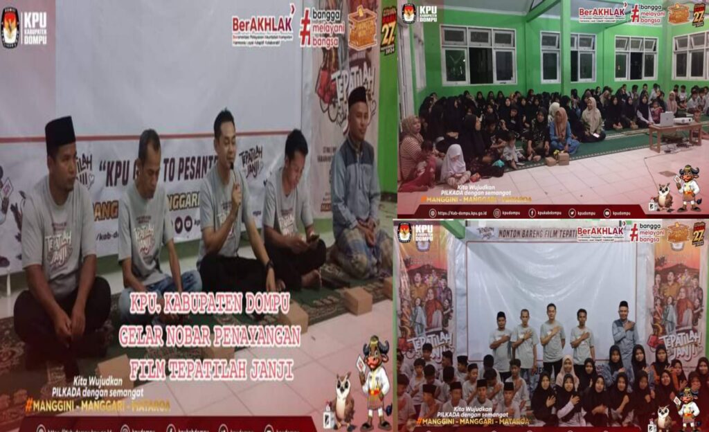 Ketua Divisi Sosialisasi Pendidikan Pemilih, Parmas Dan SDM KPU. Kabupaten Dompu Yusuf menyampaikan, Nobar Film Tepatilah Janji ini merupakan sarana kegiatan sosialisasi yang strategis, tidak sekedar berdampak dalam membangun kesadaran