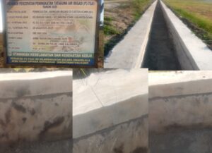 Foto, Papan Informasi dan Kondisi Fisik Saluran irigasi di Kelurahan Kandai Satu Kecematan Dompu Kabupaten Dompu yang terkesan asal jadi....