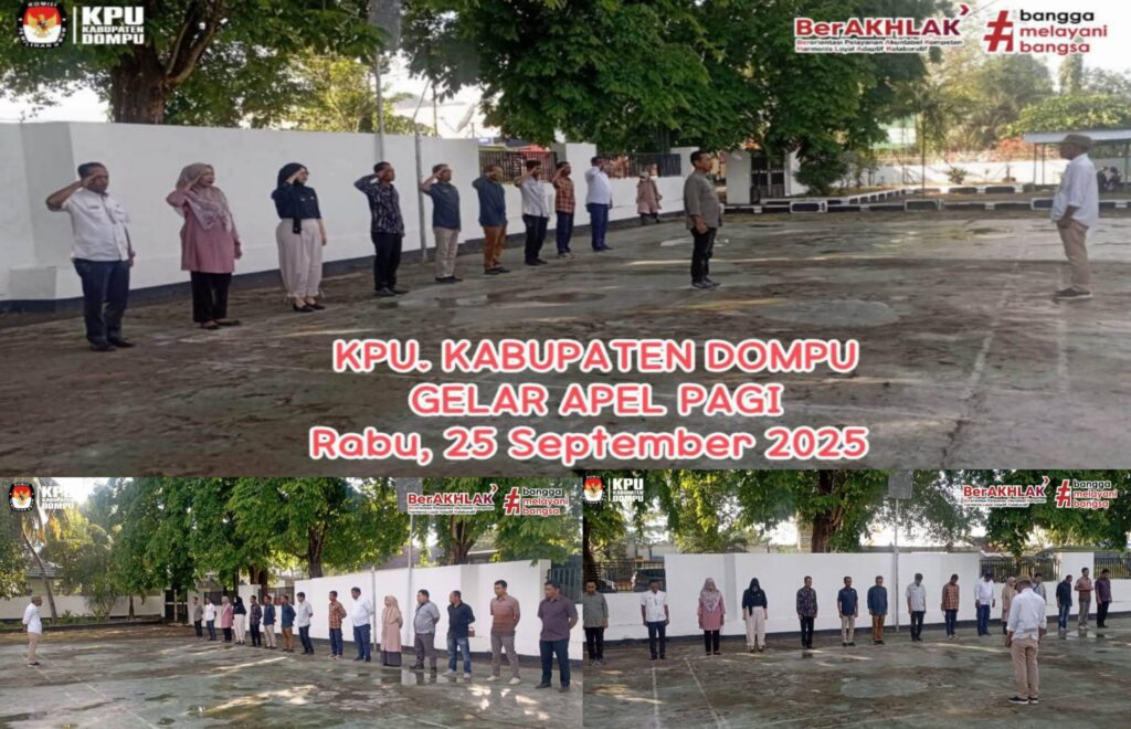Dompu, NTB, ChanelNtbNews – Komisi Pemilihan Umum Kabupaten Dompu Gelar Apel Pagi yang dipimpin oleh Sekretaris KPU Kabupaten Dompu Lahmuddin.