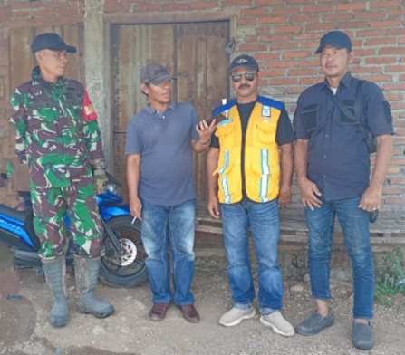 Foto, Ketua Pelaksana Proyek Pembangunan Saluran Irigasi Tersiar, Hasan, AMd, Didampingi Petugas Lapangan, Ridwan dan Babinsa Kelurahan Kandai Dua, Sersan Kepala, Agus Salim di lokasi pembersihan Doro Cumpa