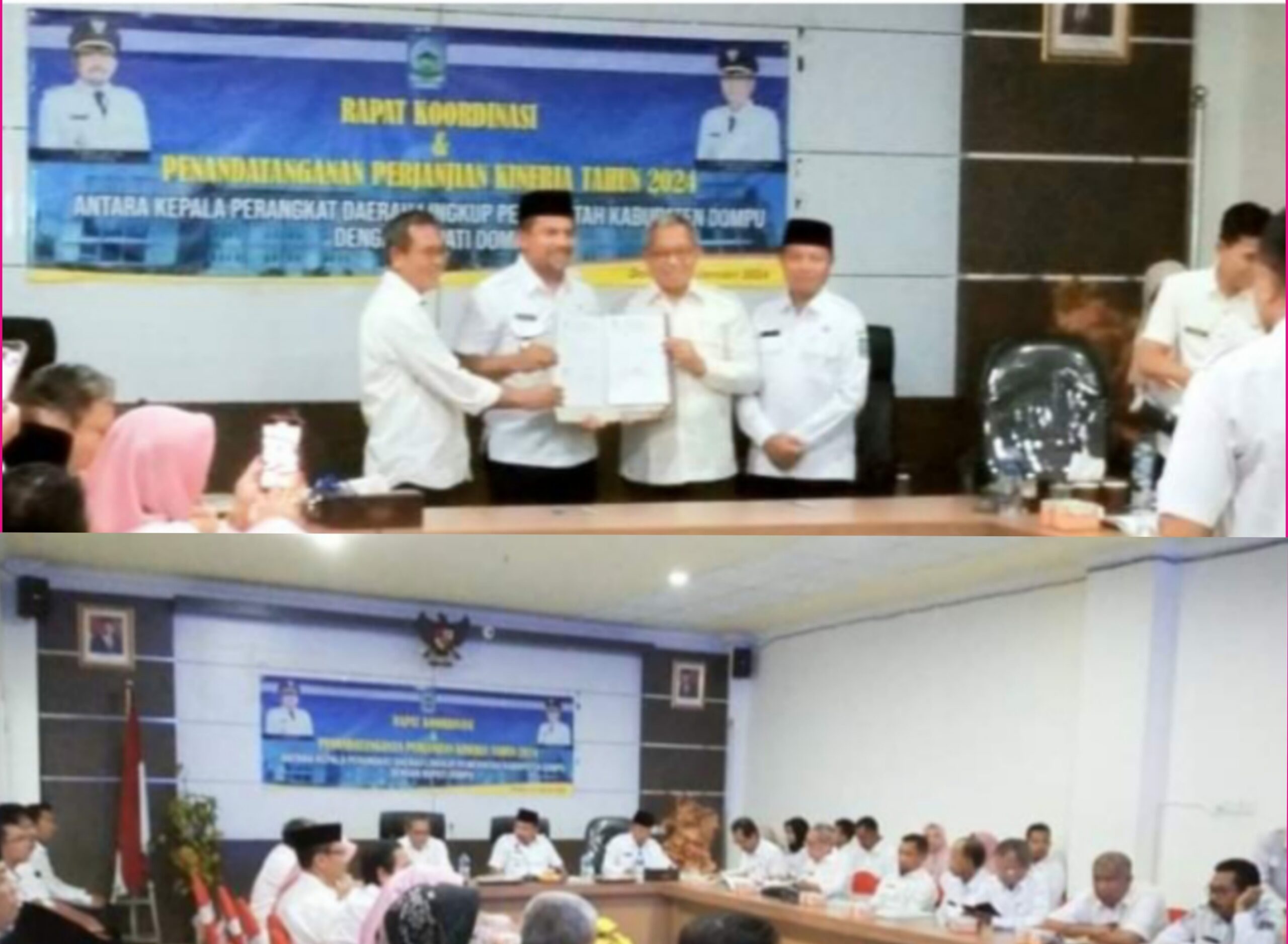 Rakor tersebut dirangkaikan dengan Penandatanganan Bersama Perjanjian Kerja Tahun Anggaran 2024 antara Bupati Dompu, H. Kader Jaelani dengan Pimpinan Organisasi Perangkat Daerah (OPD) Se Kabupaten Dompu.