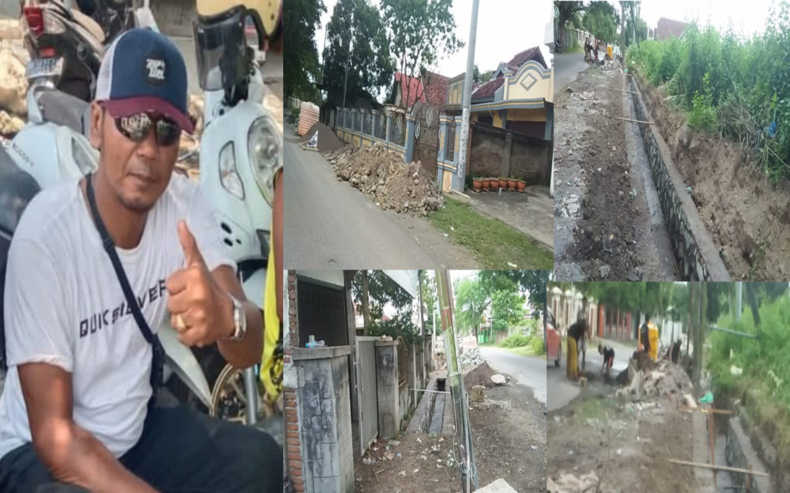Foto, Fauzid alias Gepeng Pengendali, Anggota Gerakan Rakyat Anti Korupsi (Gerak) Kabupaten Dompu dan Foto pekerjaan proyek saluran irigasi di jalan Baru Karijawa Kecematan Dompu Kabupaten Dompu.
